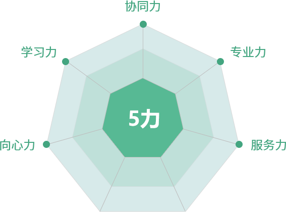 在遵循企业经营开展战略的基础上,总结出契合企业实际、彰显企业文化、支撑企业开展的员工行为关键要项,以"冰山理论"为基础, 从向心力、学习力、协同力、专业力和服务力五个维度提炼,简称"K8凯发国际员工行为五力模型"。